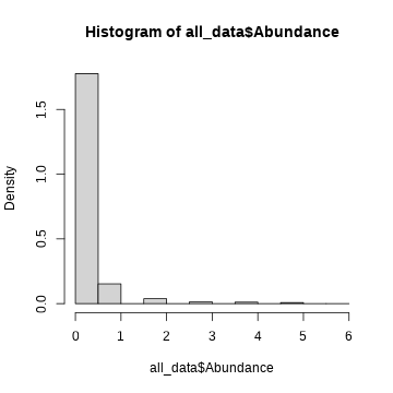 hist(all_data$Abundance, probability = TRUE )
